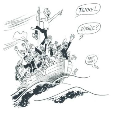 | Pour recevoir une invitation, envoyez une demande par mail en cliquant ici  Retenez les dates! "France, terre d'asile?" C’est le regard de trente-trois dessinateurs de presse emmenés par Cabu, sur le comportement de la France à l’égard de ses étrangers. Ces regards, souvent féroces mais toujours drôles sont ceux de : Aurel, Barros, Berth, Besse, Cabu, Cagnat, Catherine, Chappatte, Charb, Chimulus, Coco, Delambre, Deloire, Foolz , Ghertman, Glez, Goubelle, Honoré, Jul, Kerleroux, Kiro, Kroll, Large, Lasserpe, Lefred -Thouron, Mana Neyestani, Plantu, Potus, Rousso, Schvartz, Tignous, Willem, Wozniak... |